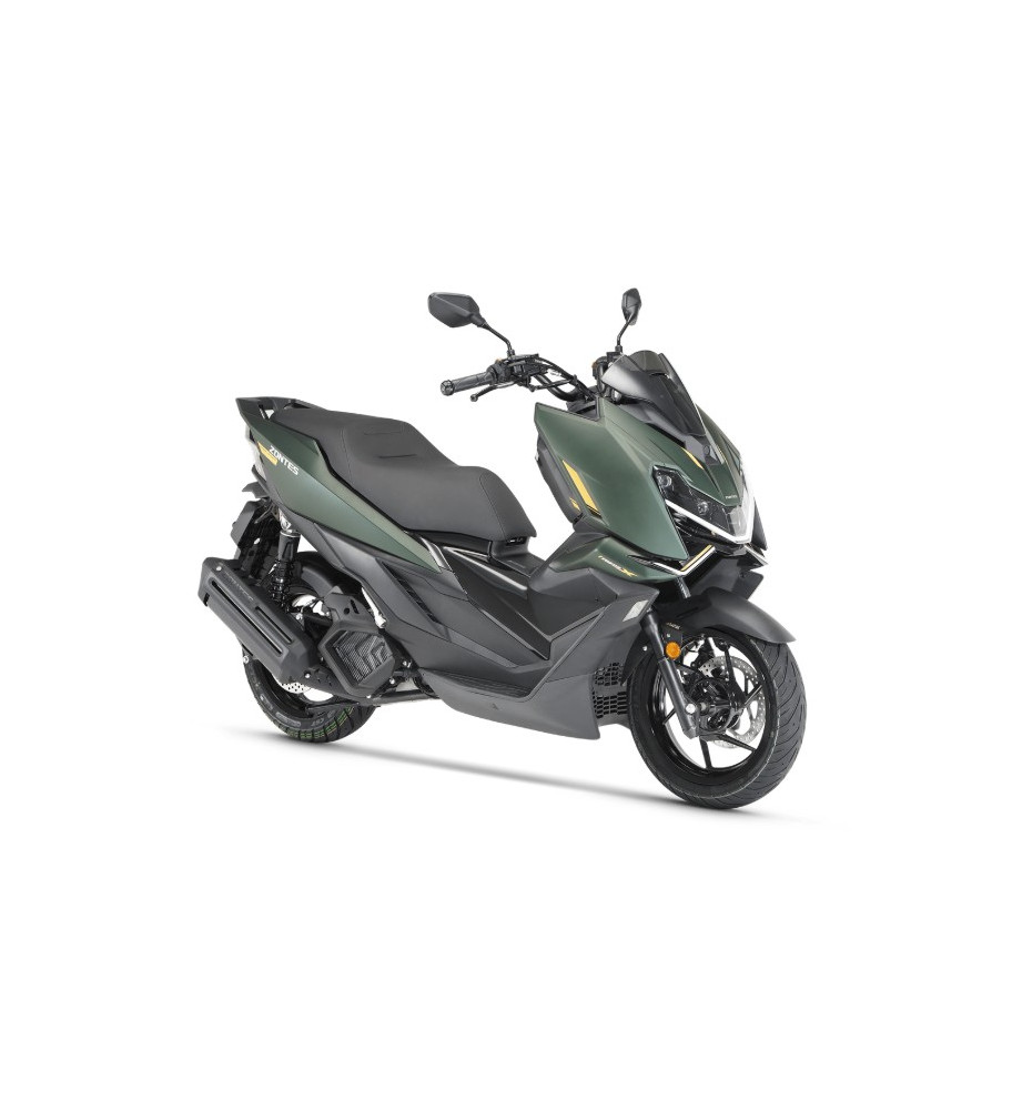 Le Zontes 125 X se distingue par ses lignes acérées et son regard de prédateur. Plus compact que le modèle "E", il est conçu pour fendre l'air avec une efficacité maximale.