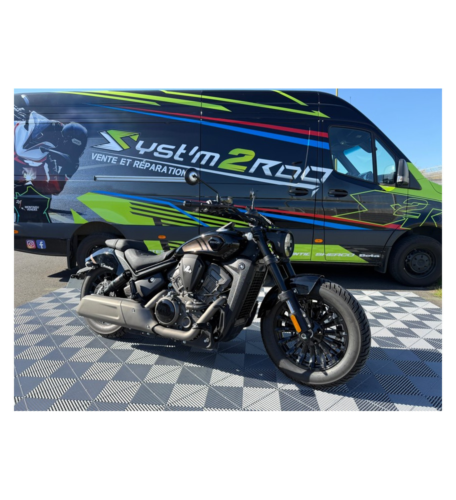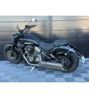 Une moto d'occasion bobber de chez Benda, la Dark flag 500 avec son moteur V4 euro 5+ homologué 2 places, moto en très bon état, disponible à l'essai (sur rendez-vous)