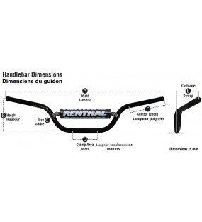 Guidon 22,2mm avec barre RENTHAL Classic Quad Yamaha YFZ350 Banshee/YFS200 Blaster