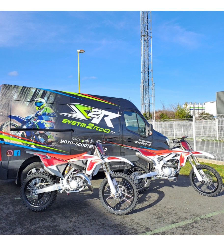 Profitez d'une offre exceptionnelle de 1000€ de pièces (Kit plastiques complets, Kit stickers, Poignées Lock on + leviers frein et embrayage, pédale de frein, bougie, plaquettes de frein, filtre à air, kit laine de roche et kit piston segments) Offre valable jusqu'au 31 juin 2024