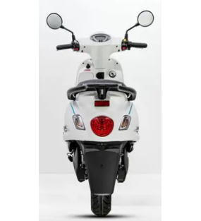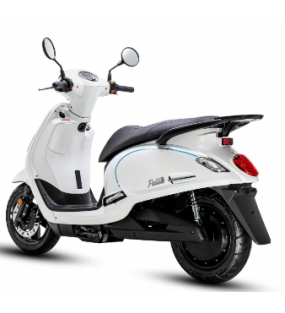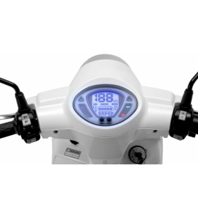 Scooter avec son look rétro , maniable, léger, autonomie environ 60 km avec 1 batterie (possibilité de mettre une deuxième batterie dans le coffre). Conduite en sécurité avec ses roues 12 pouces ,phare et feu LED, frein à disque hydraulique avant et arrière.