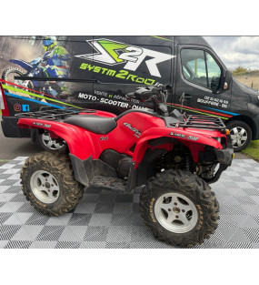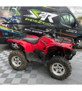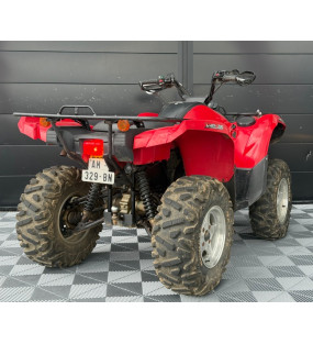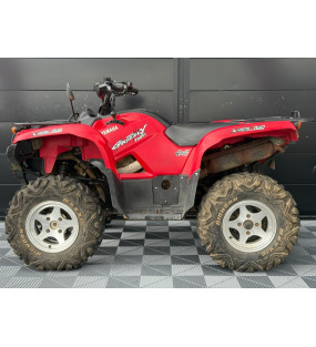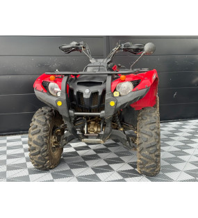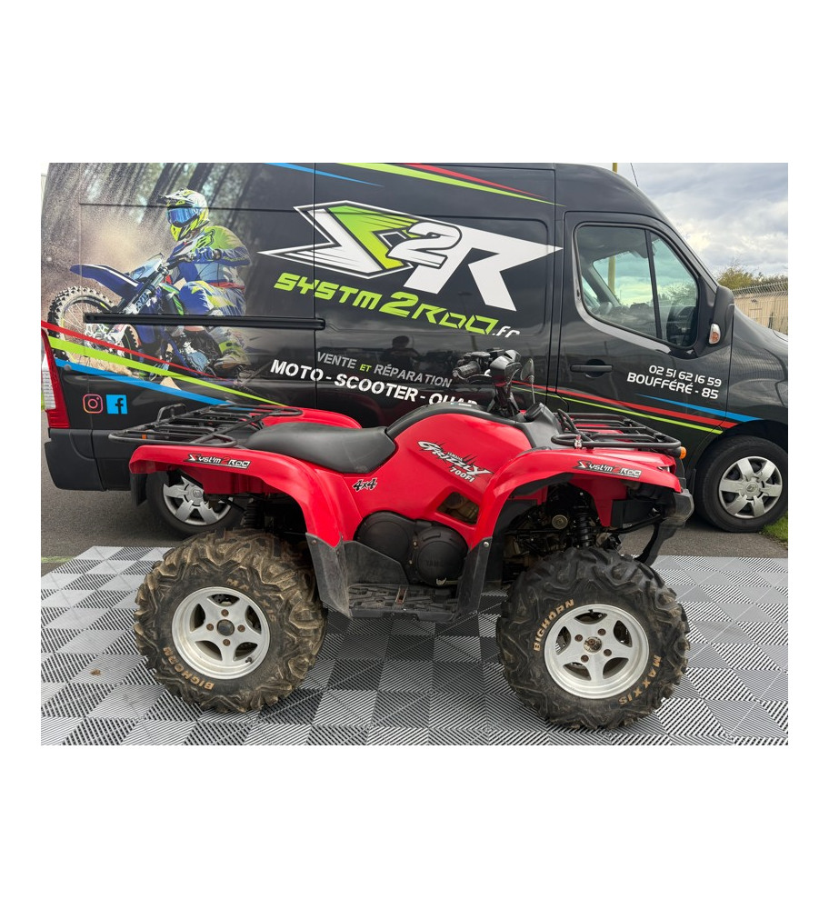 Un quad d'occasion Yamaha YFM 700 Grizzly rouge en bon état général totalisant 9950 kilomètres, immatriculé en décembre 2006.