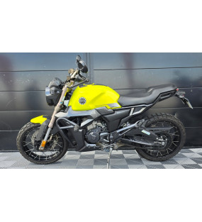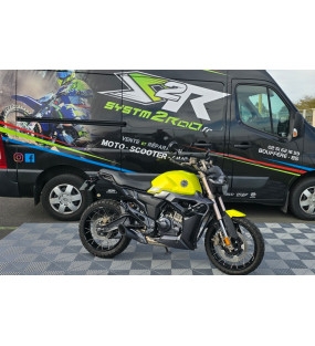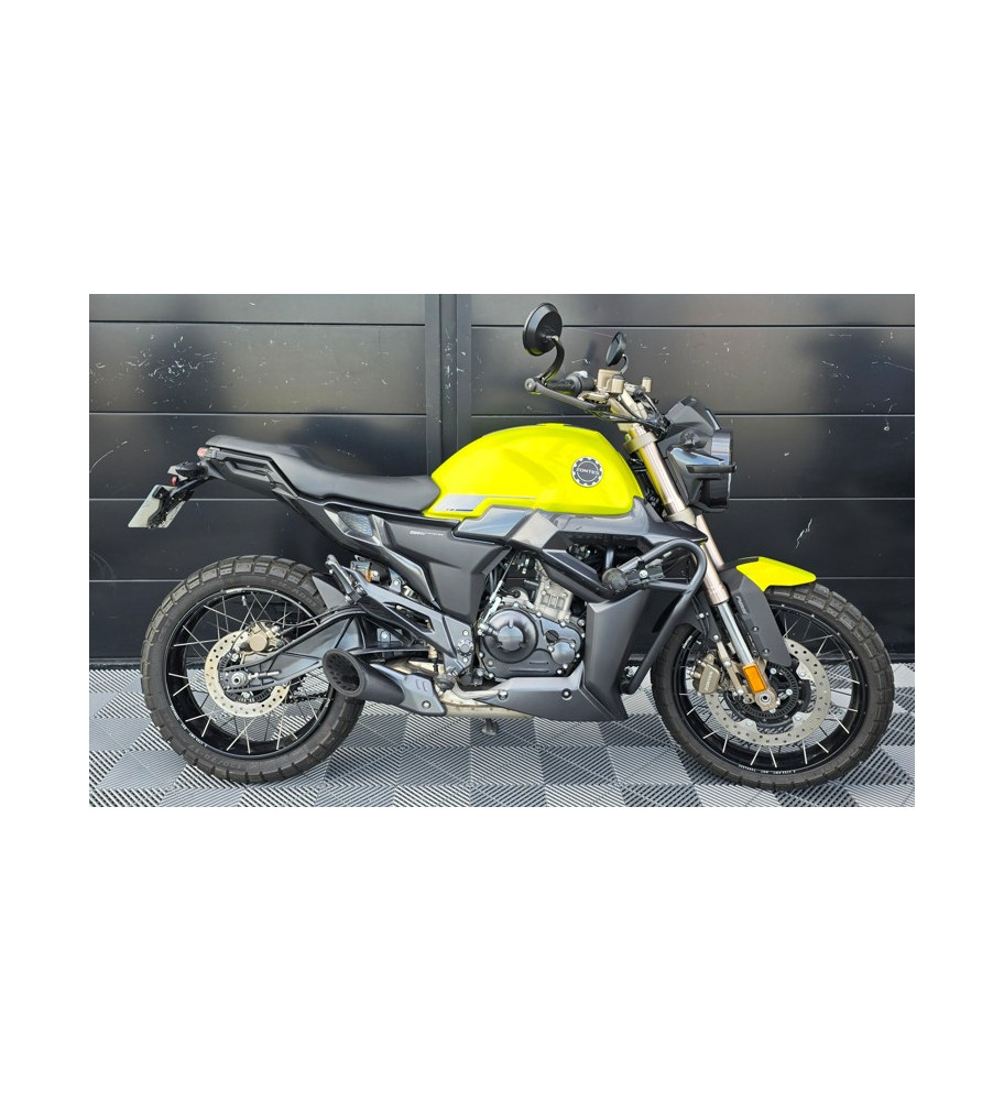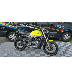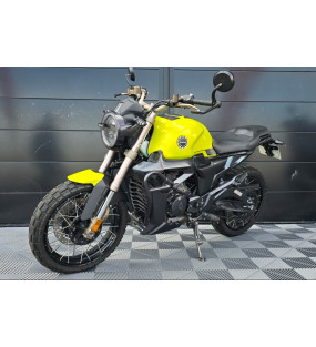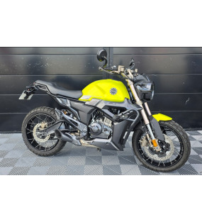 Une moto zontes 125 scrambler jaune, immatriculé en mai 2023 totalisant 2990 kilomètres en très bon état