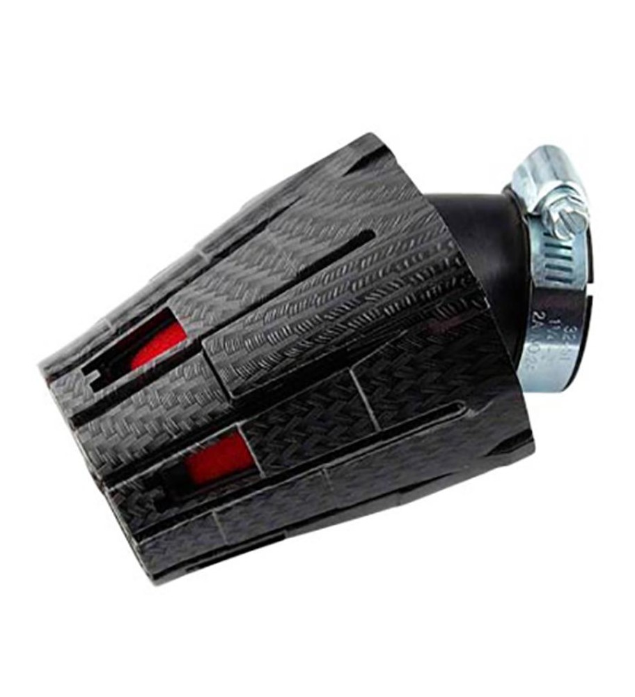 FILTRE A AIR TUN'R D28-35 E5 COUDE 45° CARBONE BRILLANT / MOUSSE ROUGE